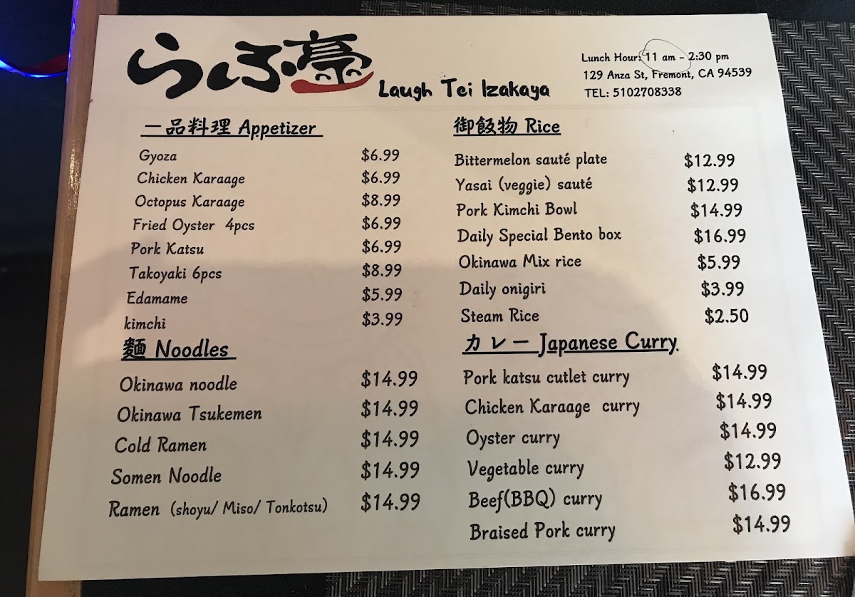 Welcome to Laugh Tei Izakaya, a delightful gem nestled in Fremont, CA, where the heart of Japan shines through every dish. This cozy restaurant specializes in authentic Japanese cuisine with a particular focus on dishes from Okinawa, blending comfort food vibes with a warm, inviting atmosphere. You’ll find yourself transported to Japan with each bite, experiencing flavors crafted with passion and care.